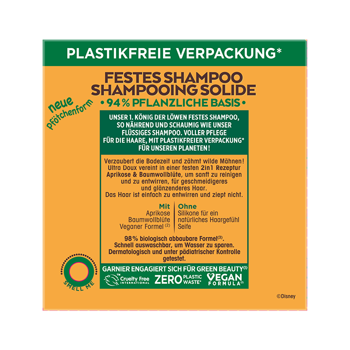 Kinderhaare und -kopfhaut sind sehr empfindlich und brauchen daher eine besonders schonende Pflege. Sie sollte auch am besten Lust nach mehr machen, damit die Kleinen auch ihren Spaß dabei haben und sich so schnell daran gewöhnen. Milde Pflegeformel und zauberhafter Duft: Mit dem Garnier Ultra Doux für Kinder Mildes Festes Shampoo 2-in-1 Aprikose und Baumwollblüte wird Haarewaschen für Kinder zum Vergnügen. Der Aprikosen-Extrakt ist für seine pflegende Eigenschaften bekannt und besonders schonend zur Kinderkopfhaut. Und dank des Baumwollblüten-Extrakts erlangt das Haar wieder mehr Geschmeidigkeit. Für Kinder besonders wichtig: Die ultra-sanfte Formel brennt nicht in den Augen und befreit die Haare im Handumdrehen von Knoten, ohne zu ziepen. Darüber hinaus wurde das hochverträgliche Shampoo unter kinderärztlicher Aufsicht getestet.
